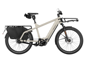 Riese & Müller Multicharger3 er en alsidig og robust el-ladcykel (longtail) designet til familier og transportbehov, der kombinerer en almindelig elcykels agilitet med kapacitet til at transportere op til to børn eller 65 kg gods, udstyret med kraftfuld Bosch-motor (f.eks. Cargo Line), stabil geometri, og ofte med komfortfunktioner som affjedret forgaffel og trinløst Enviolo-gear (Vario-versionen), og muliggør transport af både passagerer og bagage med standard tilbehør som frontbagagebærer og støtteben.